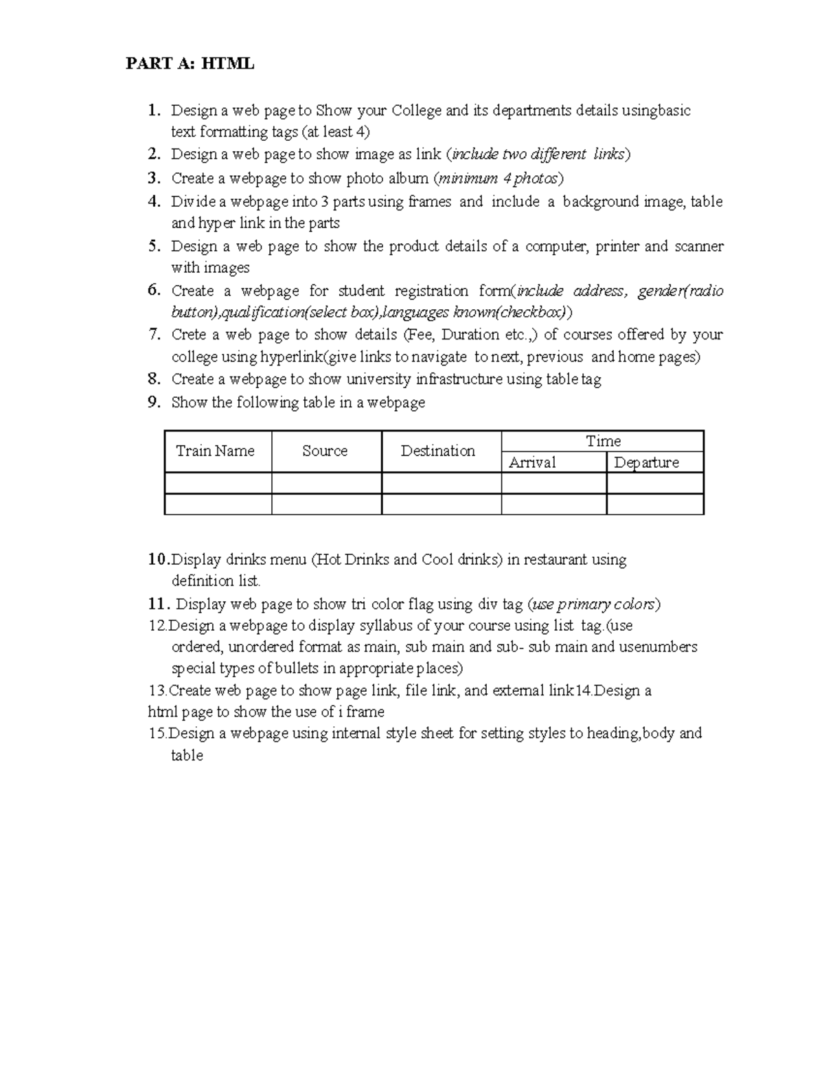 II Semester HTML - PART A: HTML 1. Design a web page to Show your ...