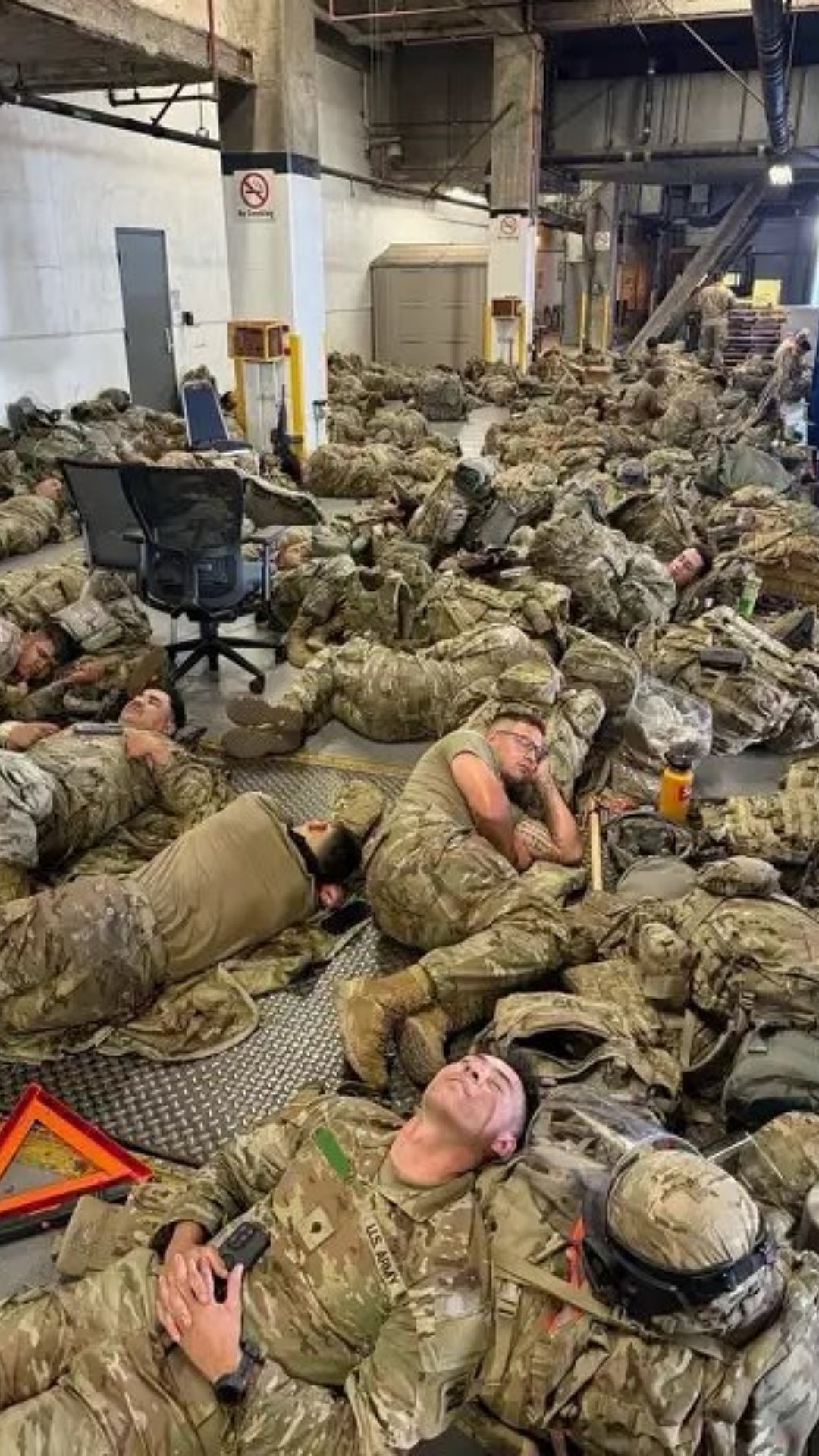 Troops deployed to LA seen sleeping on floor