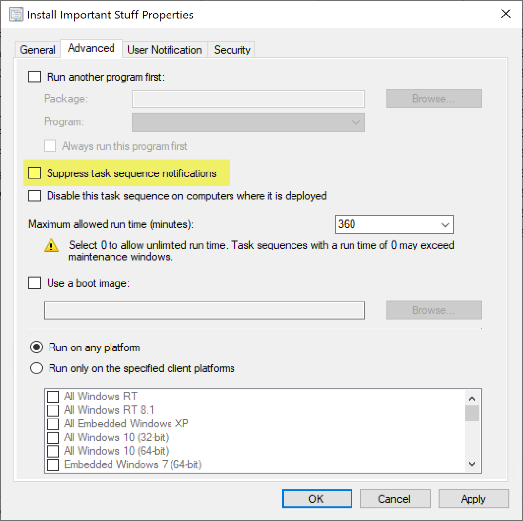 2 Easy Ways To Suppress SCCM Task Sequence Notifications