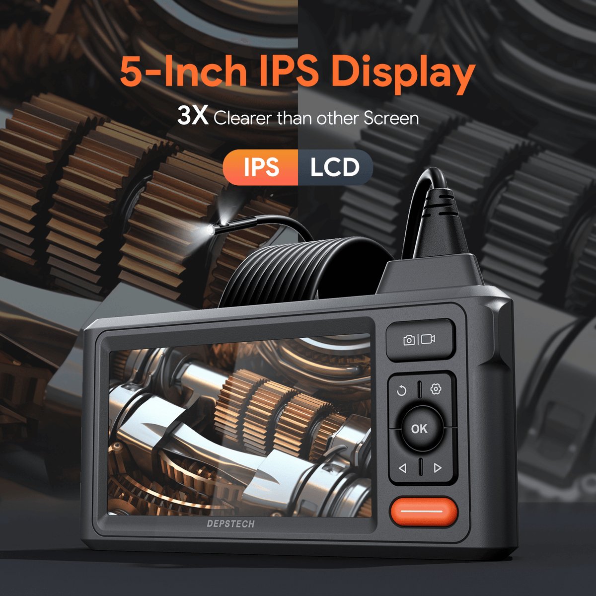 DEPSTECH Endoscope Camera with Light, 5" IPS Screen, Dual Lens ...