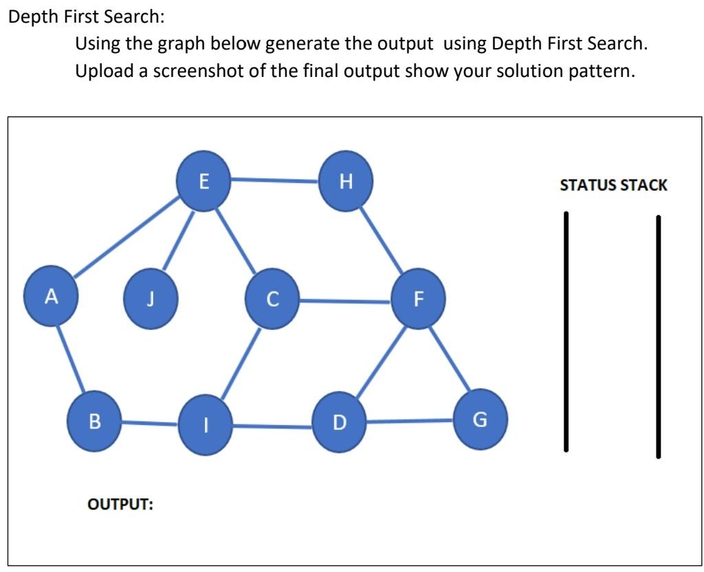 Solved Implement Depth First Search (DFS) using a stack. | Chegg.com