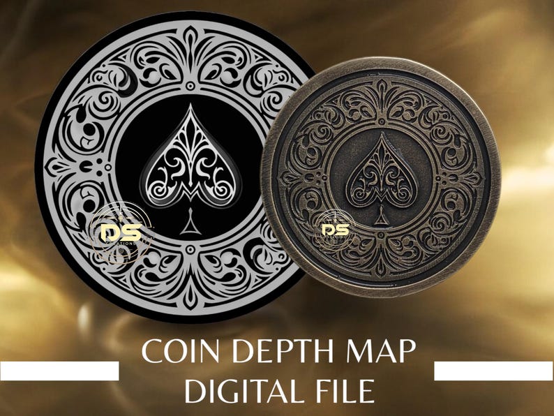 Ace of Spades Filigree | '3D' Deep Engrave Grayscale Coin Depth Map ...