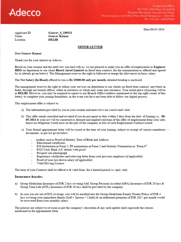 Gaurav 3 189321 Offer Letter | PDF | Employment | Information Privacy