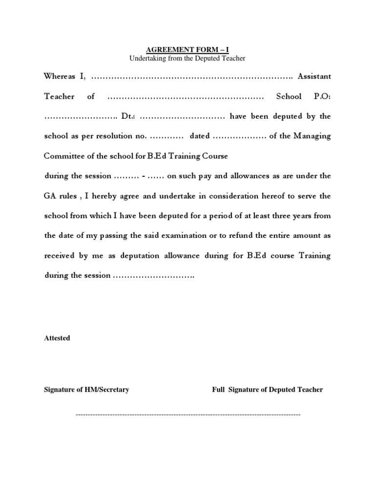 Agreement Form (New) (Undertaking From The Deputed Teacher) PDF | PDF