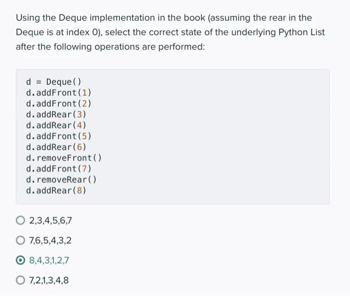 Solved Using the Deque implementation in the book (assuming | Chegg.com