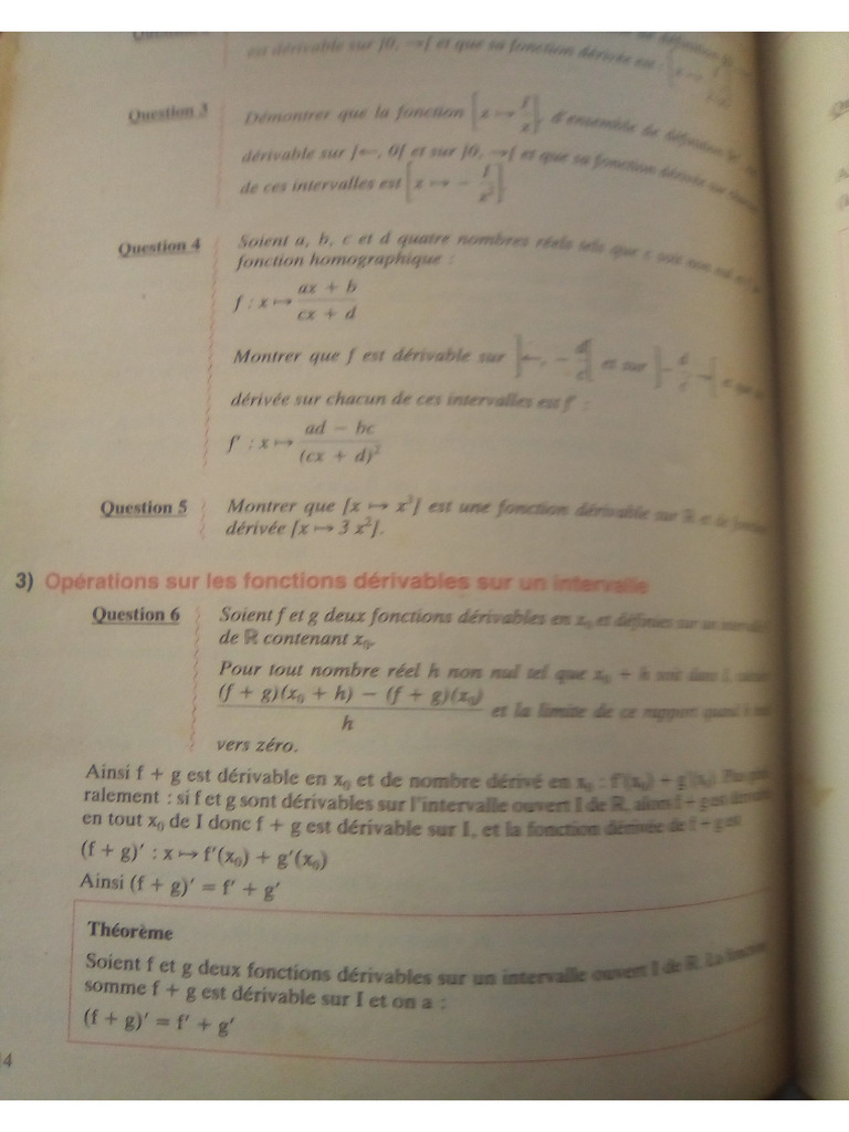 dérivation sur un intervalle et opérations sur les fonctions dérivables ...