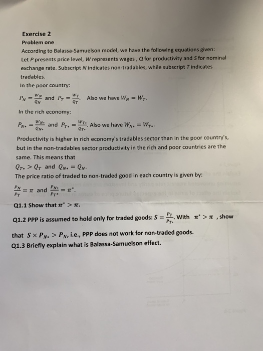 Solved Exercise 2 Problem one According to Balassa-Samuelson | Chegg.com