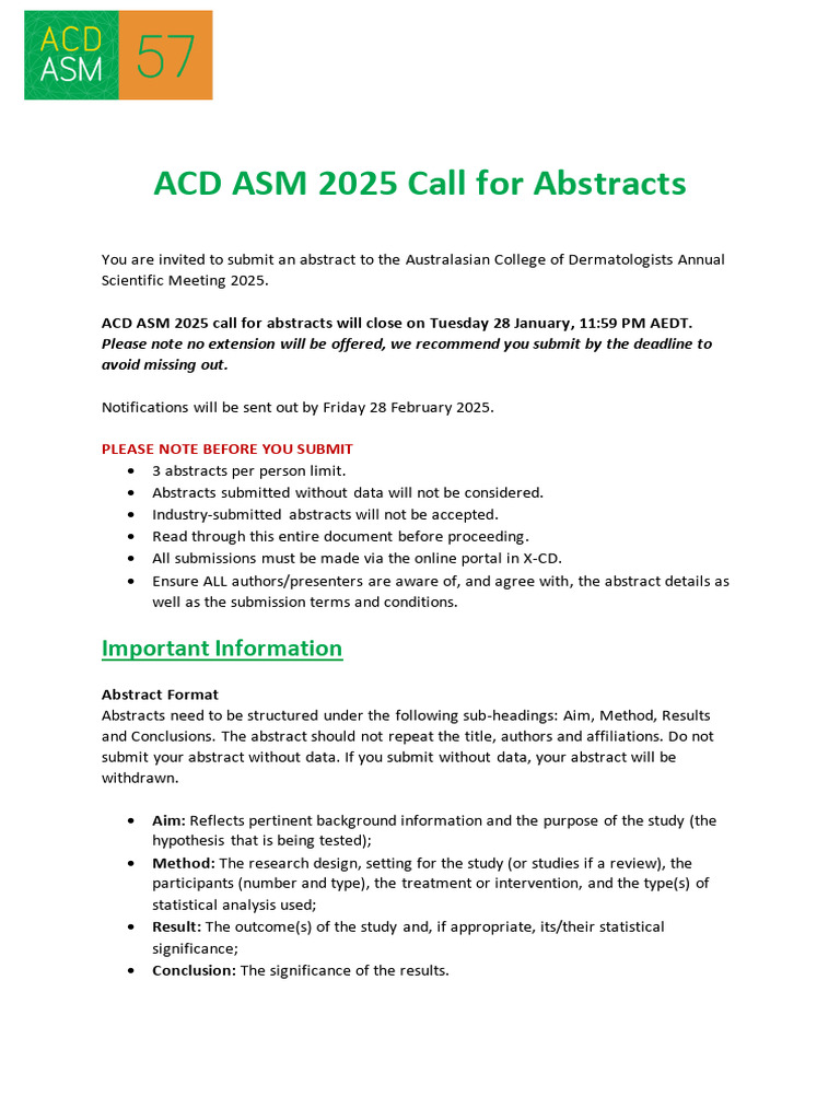 ACD ASM 2025 Abstract Guidelines | PDF | Dermatology | Abstract (Summary)