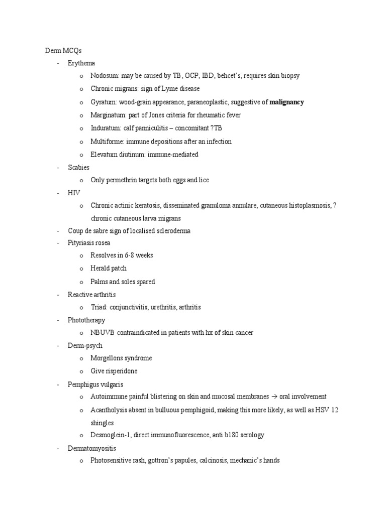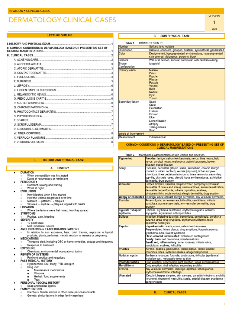 Derm Note | PDF | Diseases And Disorders | Medical Specialties