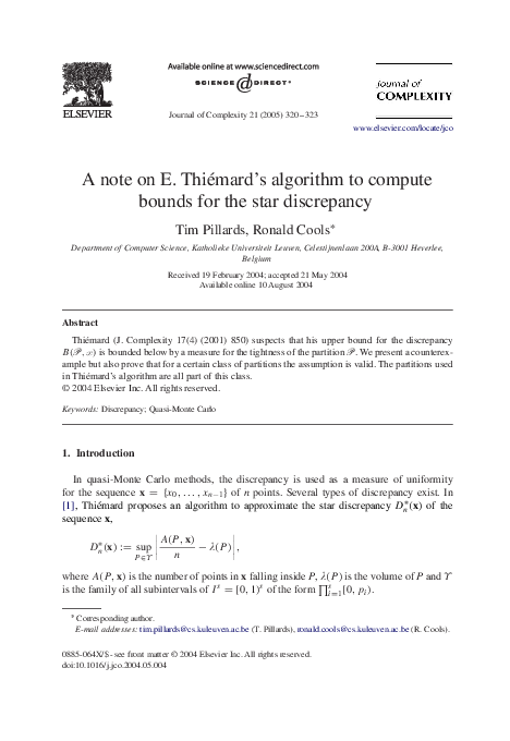 (PDF) A note on E. Thiémard's algorithm to compute bounds for the star ...