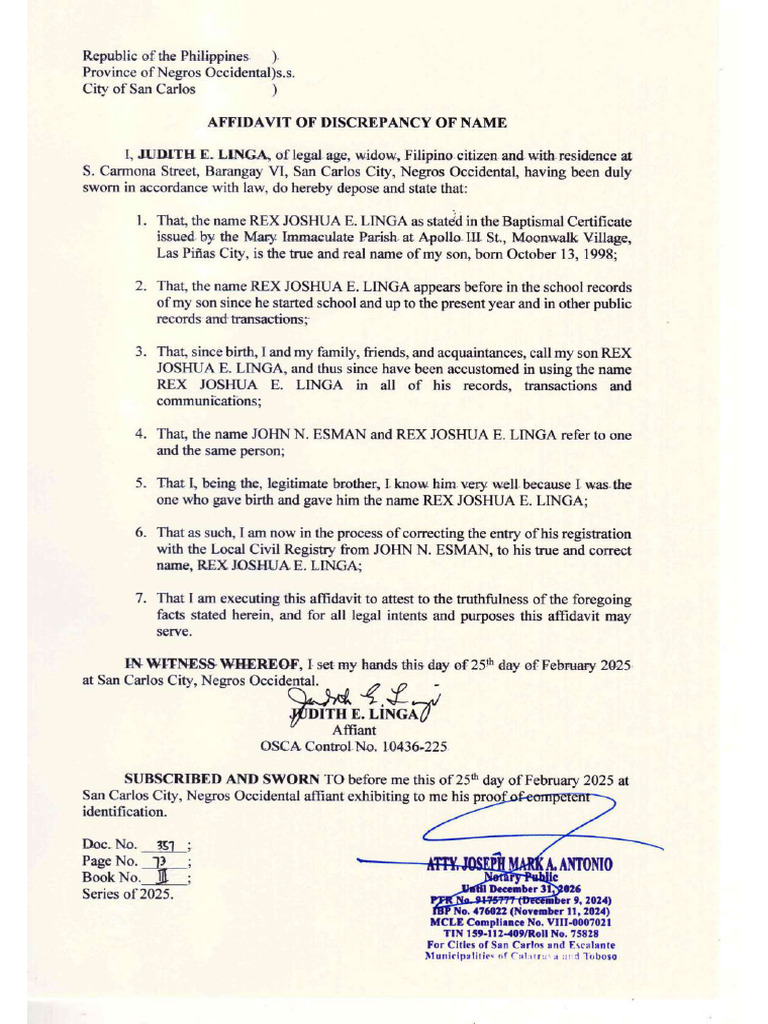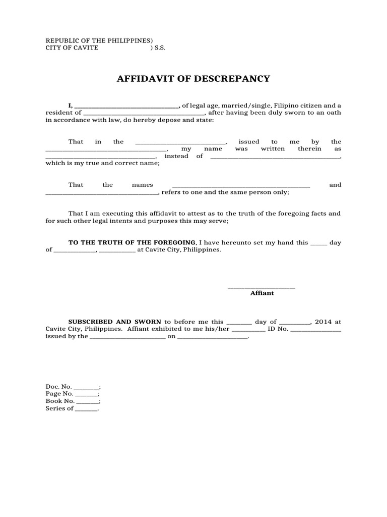 Affidavit of Descrepancy of Name | PDF