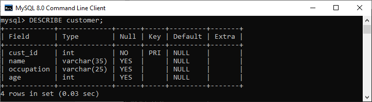 Understanding MySQL Table Structure: DESCRIBE Statement & | Course Hero