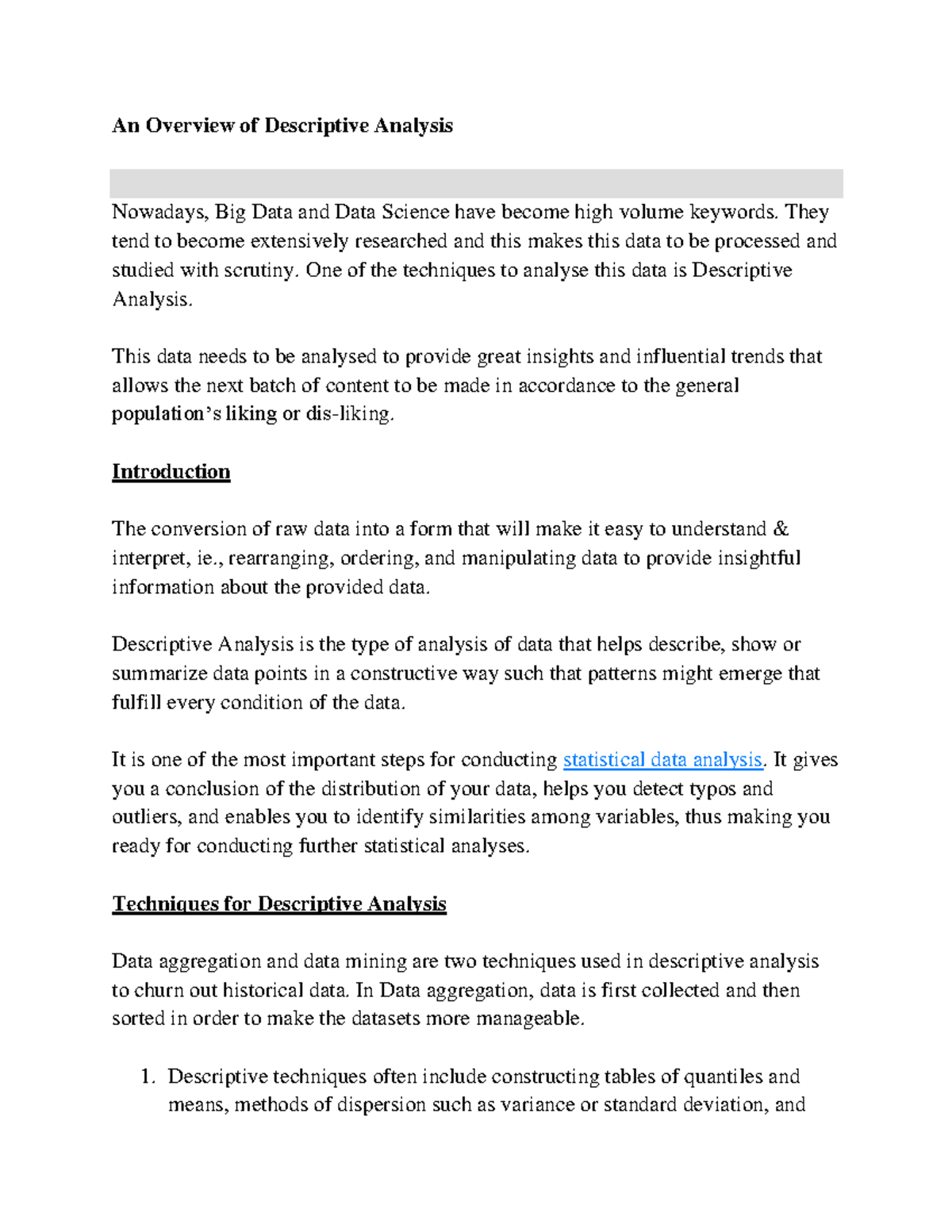 (PDF) Descriptive Analysis