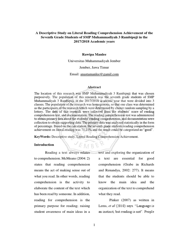 (PDF) ANALYZING STUDENTS' READING COMPREHENSION ON DESCRIPTIVE TEXT AT ...