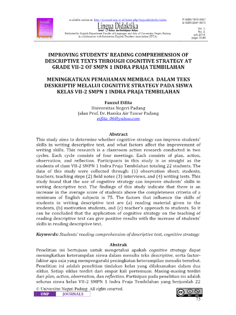 (PDF) INCREASING STUDENTS’ READING COMPREHENSION ABILITY ON DESCRIPTIVE ...