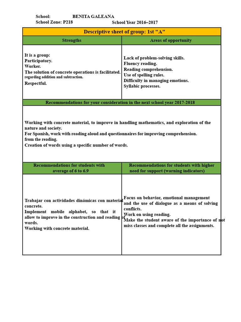 Descriptive sheets by student and by group 6th grade | PDF | Reading ...