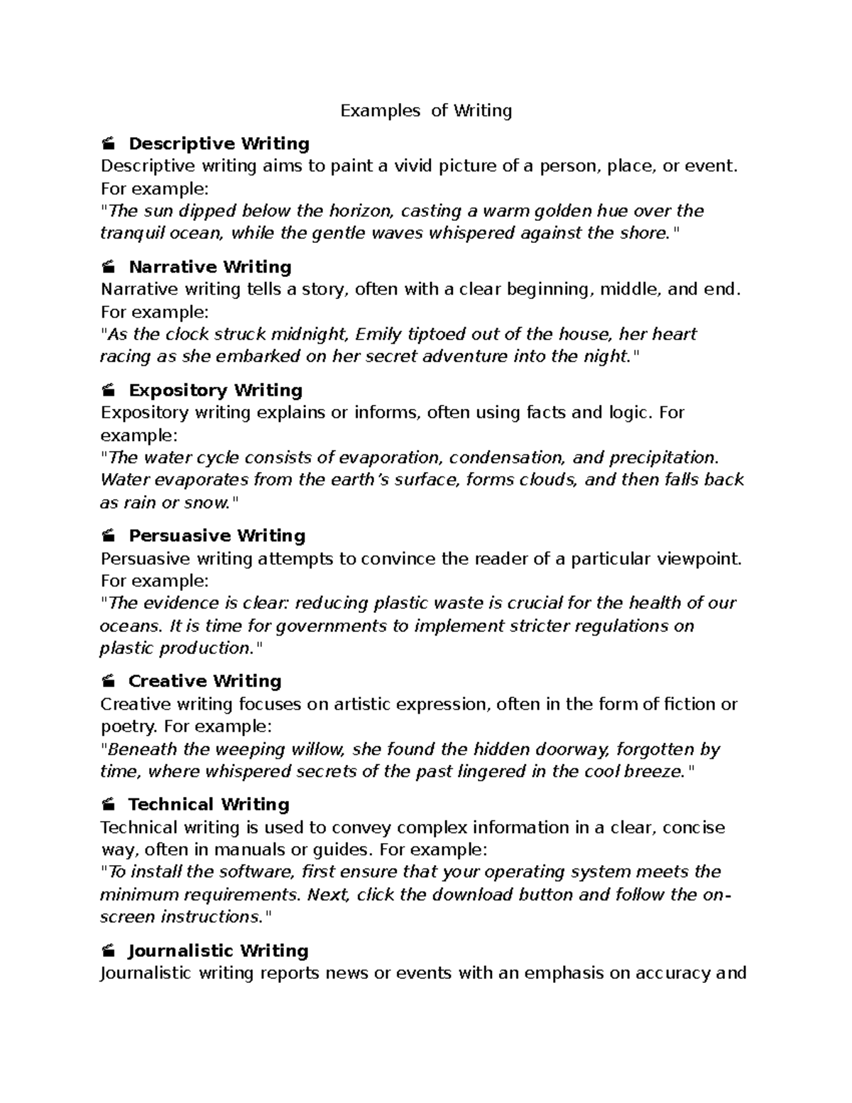 Types of writing, Narrative writing, Descriptive writing, Expository ...