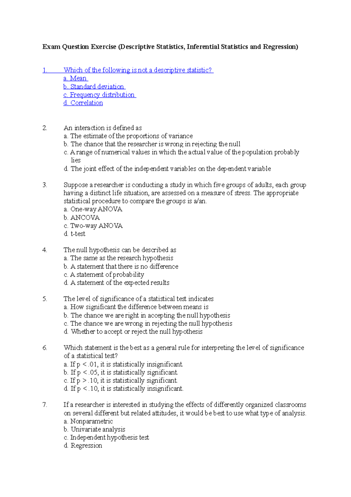 Sample/practice exam, questions - Descriptive Statistics 1 the mode ...