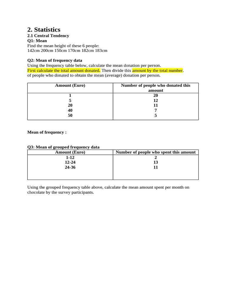 Descriptive Statistics Exercise 1 - Descriptive Statistics Exercise ...