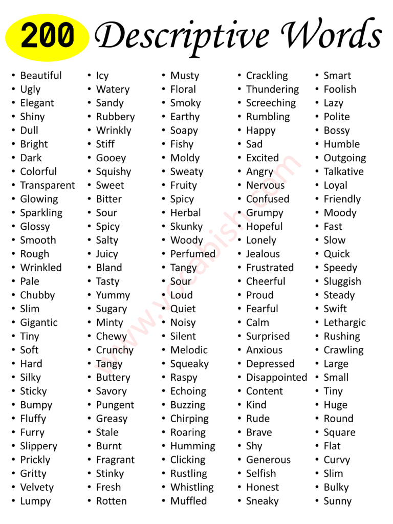 250+ Descriptive Words Examples with Types | Vocabish