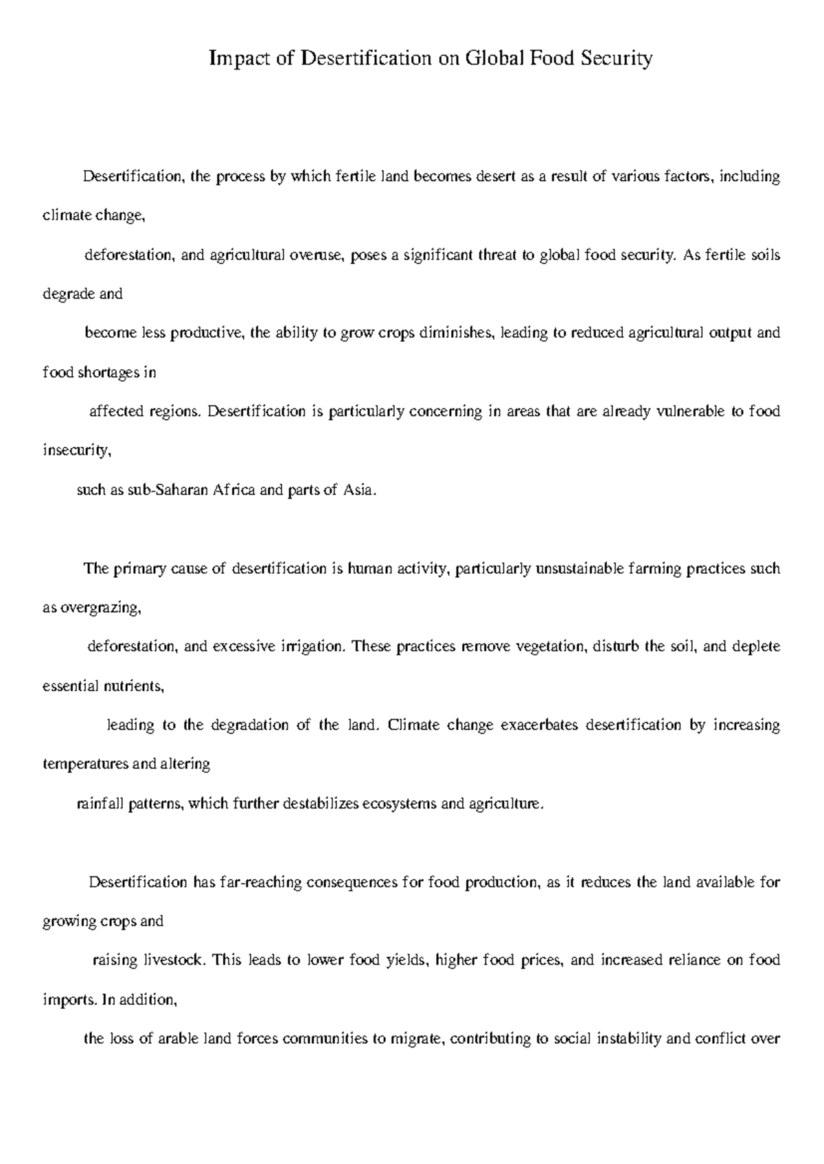 Impact of Desertification on Global Food Security Essay - Studocu