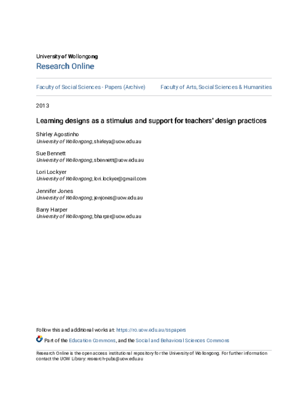 (PDF) Learning Designs as a Stimulus and Support for Teachers’ Design ...
