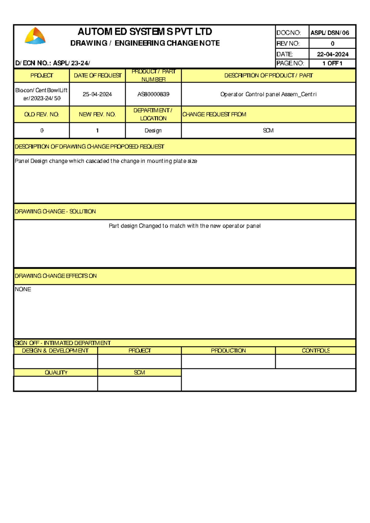 2024-04-25-Drawing Engineering Change Note-Panel mount - DOC NO: ASPL ...