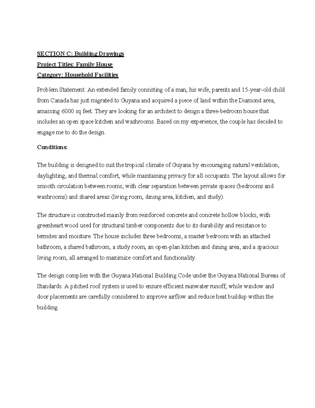 TD Writeup: Family House Design Project for Guyana - Studocu