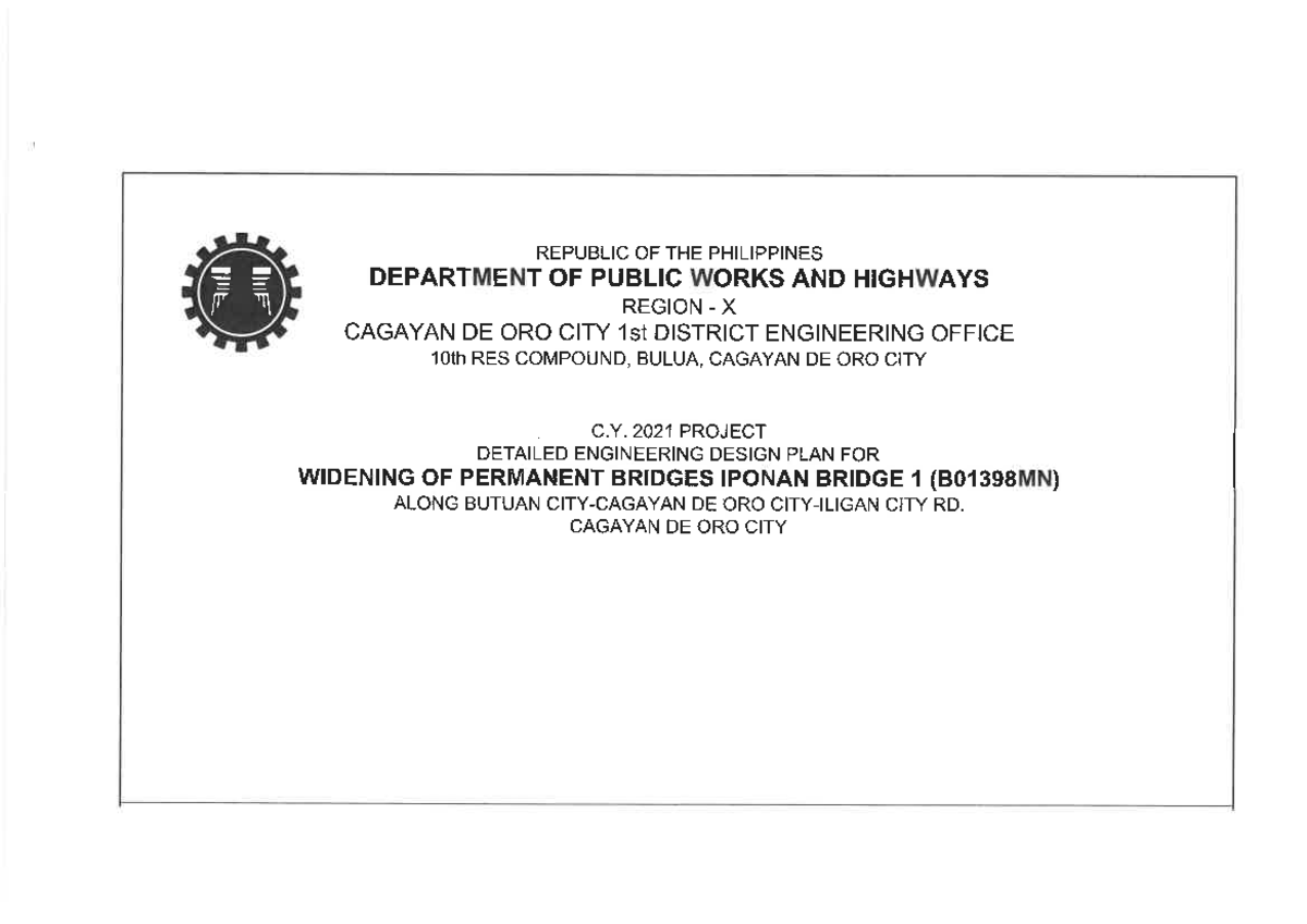 C.Y. 2021 Project Detailed Engineering Design Plan for Iponan Bridge 1 ...
