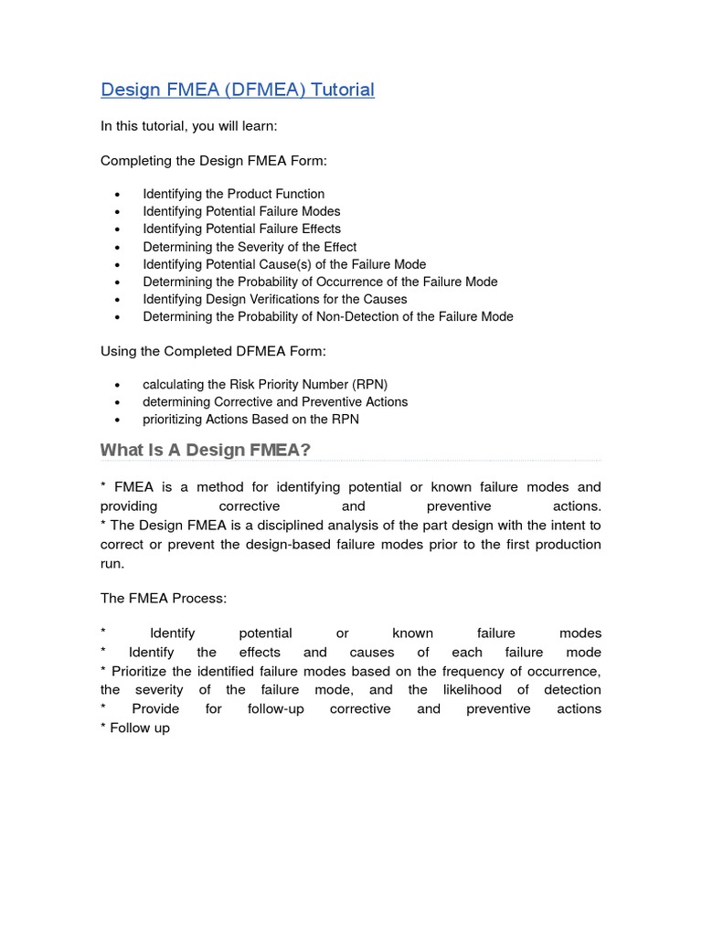Design FMEA (DFMEA) Tutorial | PDF | Production And Manufacturing ...