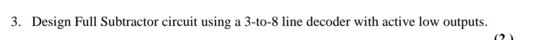 Solved 3. Design Full Subtractor circuit using a 3-to-8 line | Chegg.com