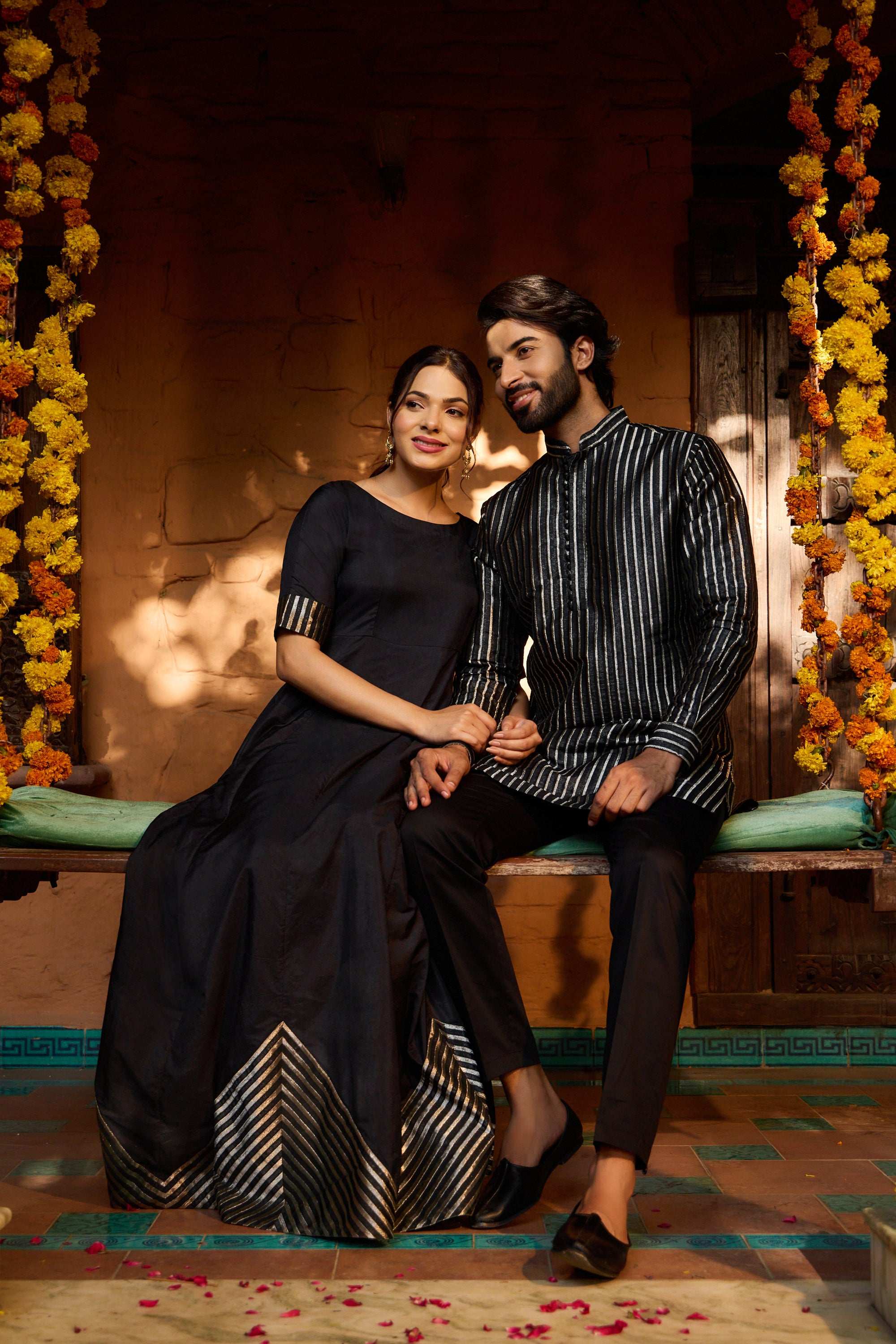 Heera & Hunar Vertical Striking Temple Stripes Design Twin Set – Atarasva
