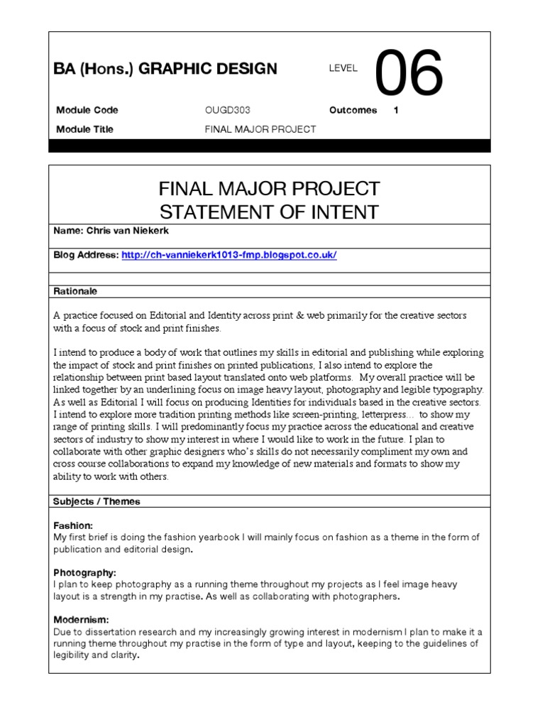 Final Major Project Statement of Intent: Ba (Hons.) Graphic Design ...