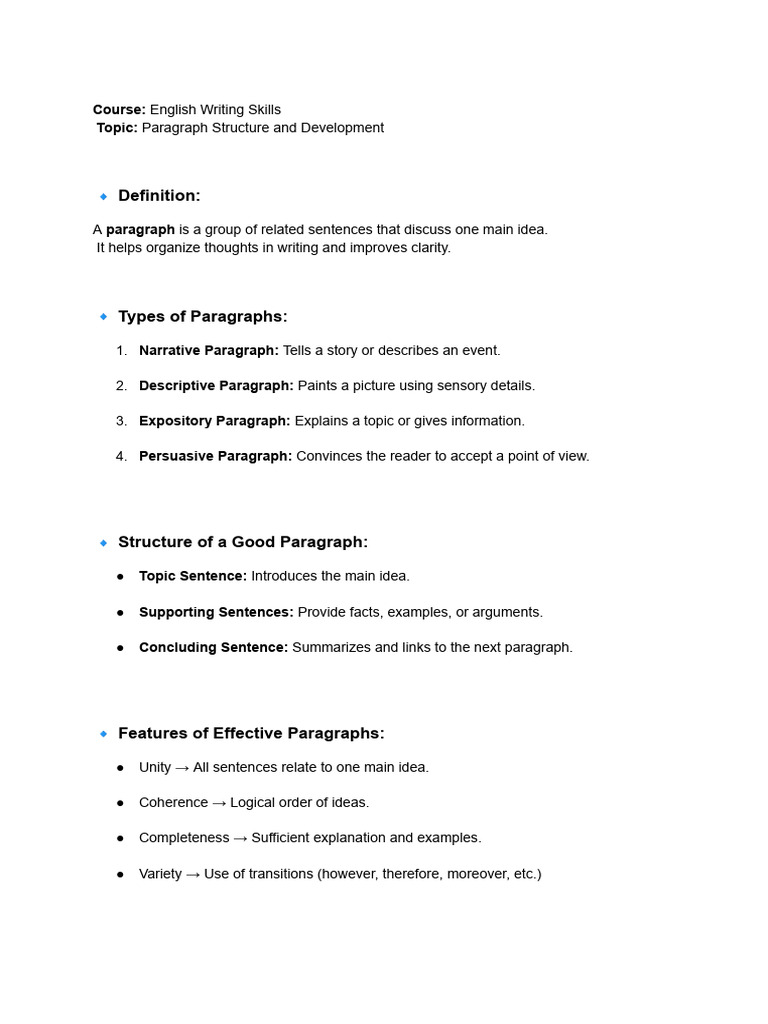 NOTES Paragraph Writing | PDF | Sentence (Linguistics) | Paragraph
