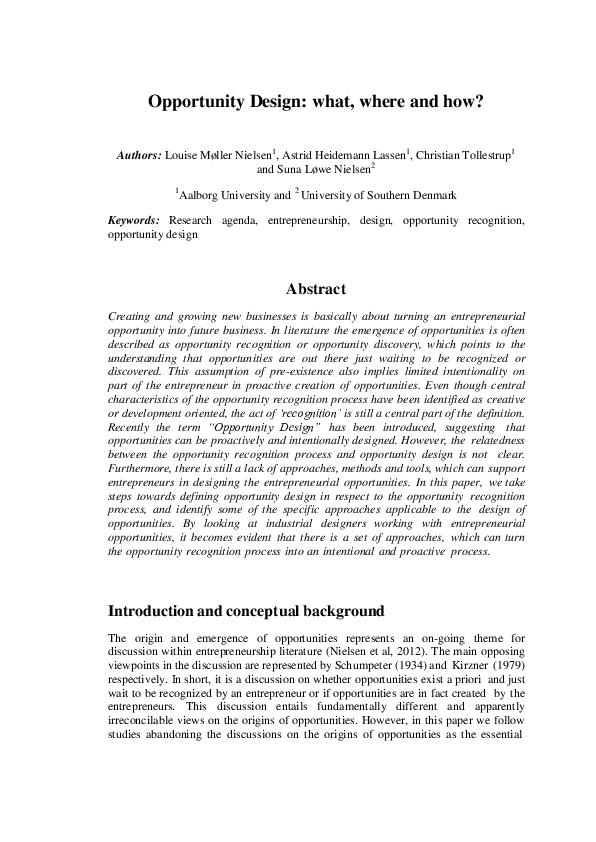 (PDF) Opportunity Design: Understanding Entrepreneurial Opportunities ...