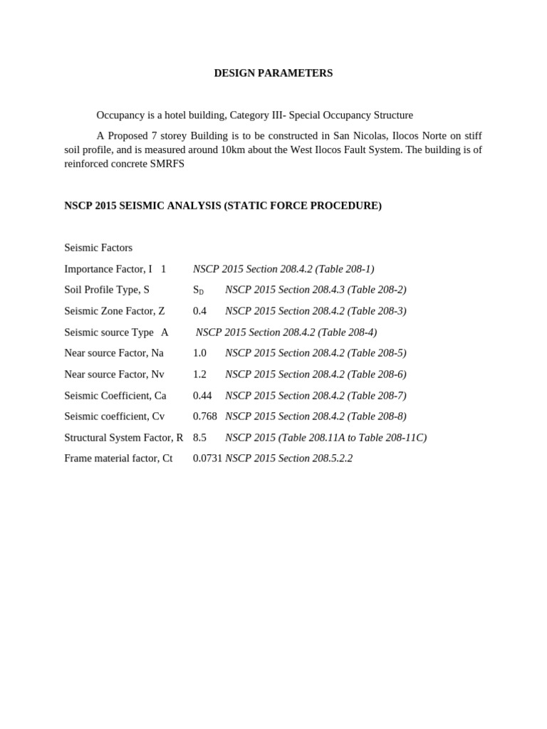 Design Parameters for Structural Loads - DESIGN - Studocu