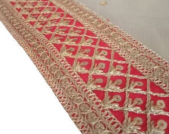 Gold Embroidered Red Fabric - Etsy
