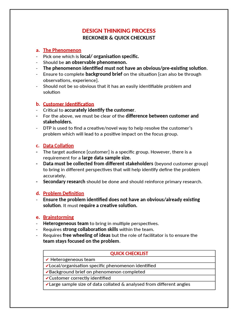 Design Thinking Checklist Overview | PDF