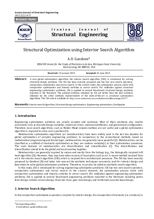 (PDF) Structural Optimization using Interior Search Algorithm