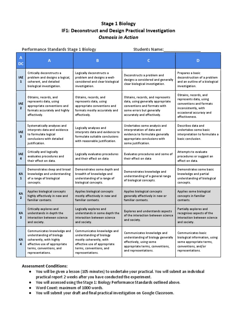 Stage 1 Biology Osmosis Design and Deconstruct | Biology - Year 11 SACE ...