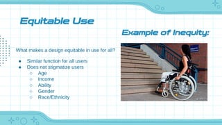 7 Principles of Universal Design: 1) Equitable Use 2) Flexibility in ...