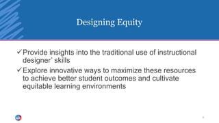 Incorporating inclusive and equitable design practices results in: 1 ...
