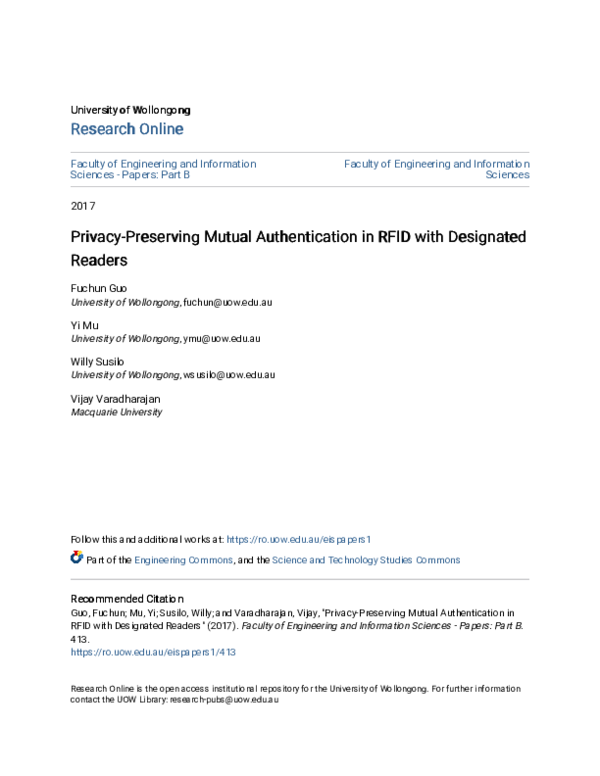 (PDF) Privacy-Preserving Mutual Authentication in RFID with Designated ...
