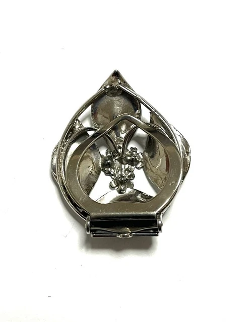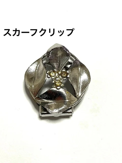 SILVER TONE SCARF Clip Leaf Flower Design Stone Accent Vintage 4cm £22. ...