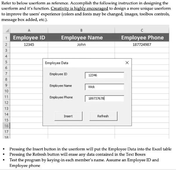 Refer to below userform as reference. Accomplish the following ...