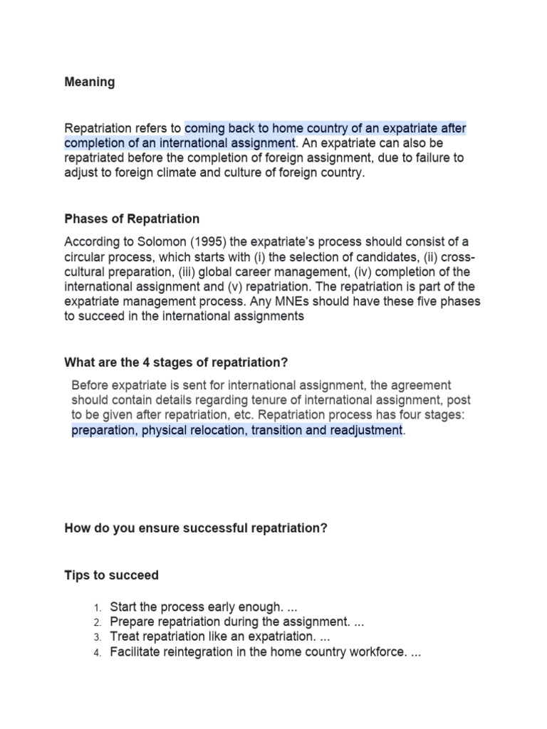 IHRM-Unit-2 Repatriation Meaning, Process, Challenges & Designing | PDF ...