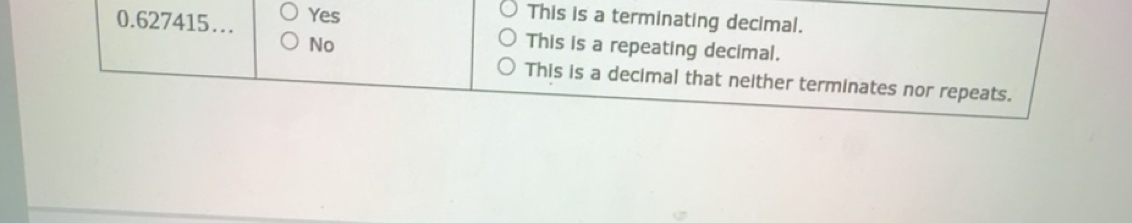 Solved: 0.627415… Yes This is a terminating decimal. No This is a ...