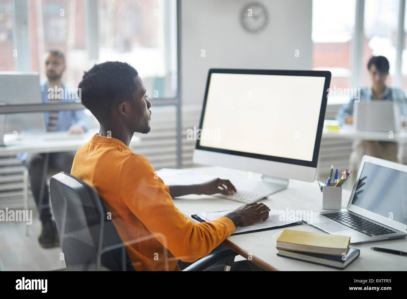 People Working on Computer PC on White Table Stock Photo - Alamy