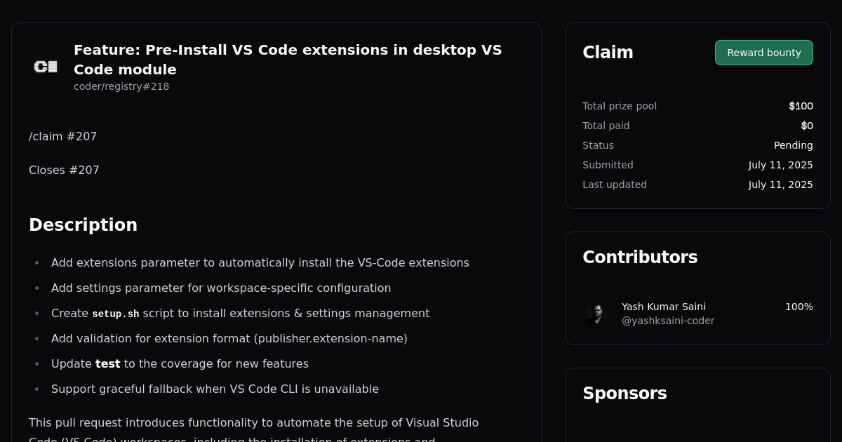 Feature: Pre-Install VS Code extensions in desktop VS Code module | Algora