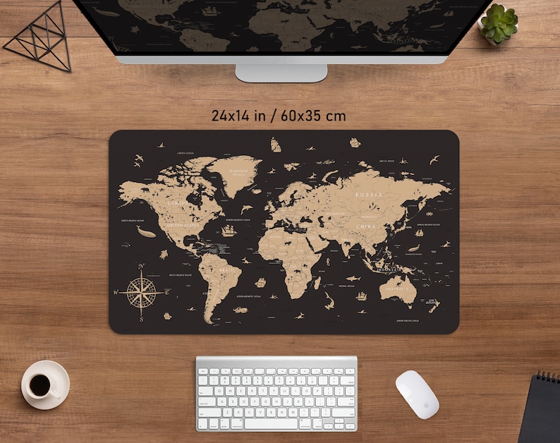 World Map Desk Mat, Modern Office Decor, Gamer Desk Accessories, Unique ...